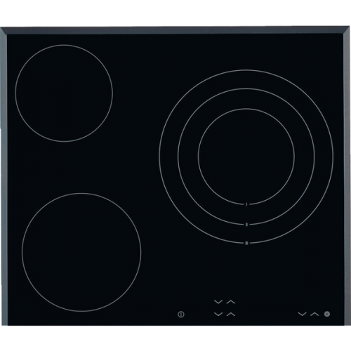 3 focos (1 triplo) TouchControl – 9 niveis de potência Biselada Largura 56cm Indicadores electrónicos do nível de potência Indicador de temperatura residual Bloqueio de segurança Sinal acustico Desconexão de segurança Cronómetro